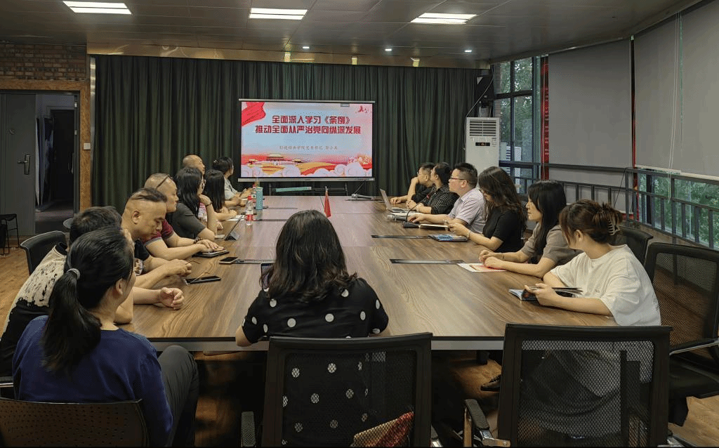 郭小兵为影视动画学院全体党员讲授了题为《全面深入学习〈条例〉 推动全面从严治党向纵深发展》的党课。他详细讲解了《条例》修订的历史、修订的意义、新版《条例》的特点和执行《条例》的要求,引导全体党员紧密结合教育部本科教育教学审核评估、戏剧与影视学位点合格评估和水平评估、戏剧与影视专业博士学位授权点申报等重点工作,紧密结合师德师风建设、意识形态工作等具体实际,深学笃用,严明纪律规矩,主动担当作为,为学院高质量发展贡献力量。