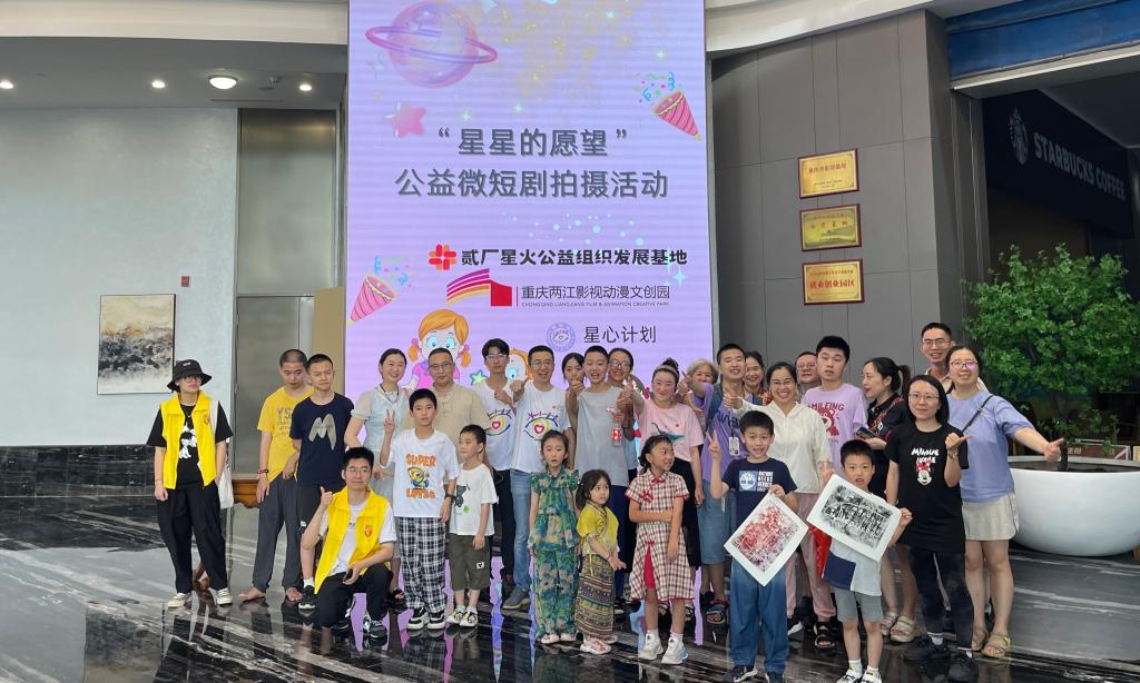 7月7日下午,建筑与环境艺术学院“星心计划”公益组织与“馨小青”助残青年志愿服务分队携手走进重庆市两江影视动漫文创园,助力贰厂星火公益组织发展基地的“星星的愿望”公益微短剧拍摄活动。此次跨界合作,不仅为孤独症儿童与普通孩子搭建了展示自我的多彩舞台,也为大学生创新创业、社会实践与未来就业提供了宽广舞台。