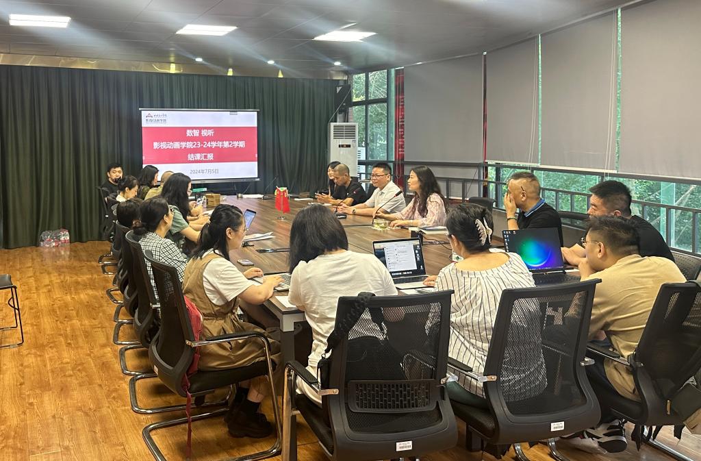 影视动画学院负责人简要介绍了本次结课汇报及展览的整体情况,并表示学院将在今后的教学活动中对所有课程实行结课汇报全覆盖。参展教师采用PPT汇报的方式,从课程内容、教学目的、教学重点难点、教学方法、学生学情分析、教学成效、教学反思及改进手法等方面对课程进行了详细介绍。现场教师围绕教学经验分享、课程设计、教学方法等方面都深入研讨。谭晖根据每位教师的汇报情况逐一点评。她谈到,教师要注重教学方法的严谨性和操作性以及课程设计的重要性,要通过课程设计来把握重点,她还鼓励学生跨学科跨专业学习,全面提升专业技能的能力。
