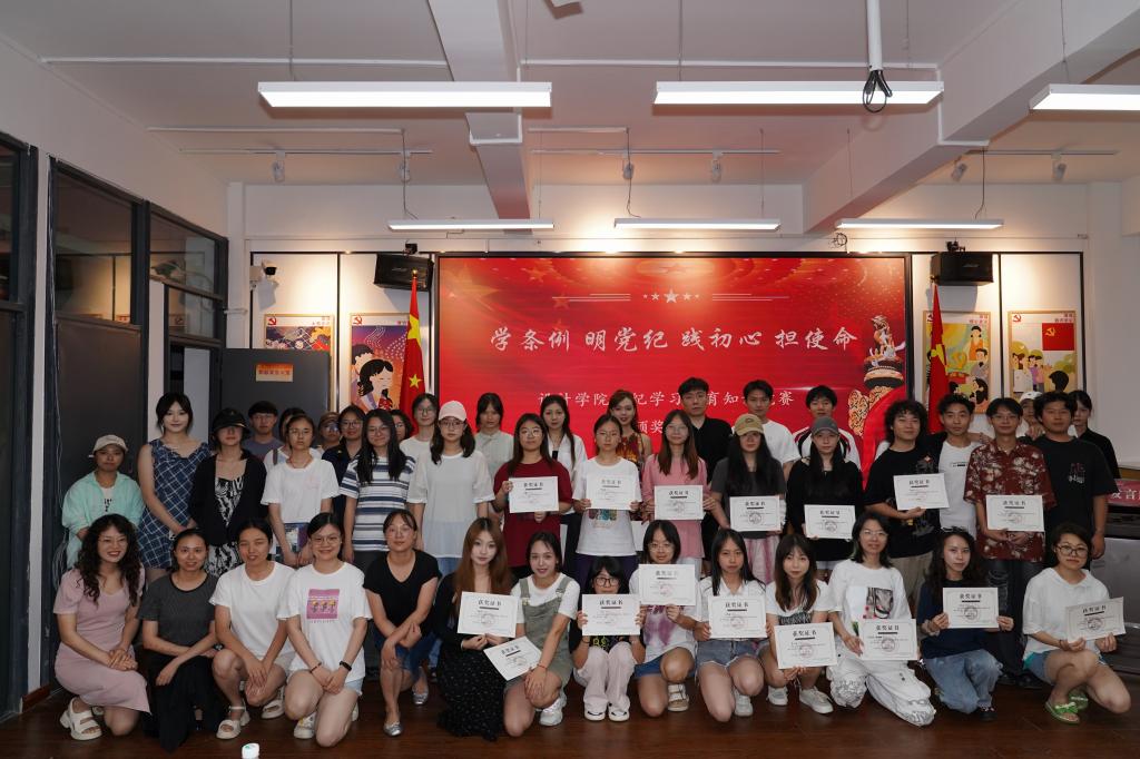 竞赛包括限时必答、抢答、即兴演讲等环节,内容涵盖了《中国共产党纪律处分条例》、党史、党章、党规等知识。同学们积极备赛、团结协作、奋勇争先,展现了良好的精神风貌。经过多轮激烈的角逐,设计学队获得一等奖、工业产品队和研究生1队获得二等奖、视传数媒队和工艺美术队获得三等奖、服装与服饰设计队和研究生2队获得优秀奖。
