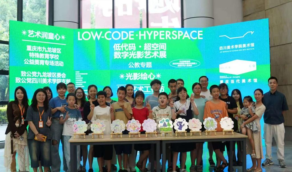 本次美育专题以“光影绘心”为主题,借助“低代码•超空间——数字光影艺术展”中的参展作品为美育主要内容,旨在带领孩子们探索新媒体艺术的魅力,让他们在创作中描绘光影的模样,激发无限的创意与想象。活动伊始,由致公党四川美术学院支部党员、本次展览的策展人向九龙坡区特殊教育学校的师生简要介绍了活动安排并带领小朋友们观看展览,沉浸式地感受光影艺术的空间之美。观看完展览之后,由致公党四川美术学院支部党员为孩子们上了一堂光影涂鸦手工课,孩子们拿起荧光画笔将观展体验与收获都凝结在镜面上,认真涂绘,敢于想象。本次活动还邀请了来自艺术教育学院、造型艺术学院和影视动画学院的学生志愿者对孩子们进行分组指导,活动在小朋友的欢声笑语中结束。