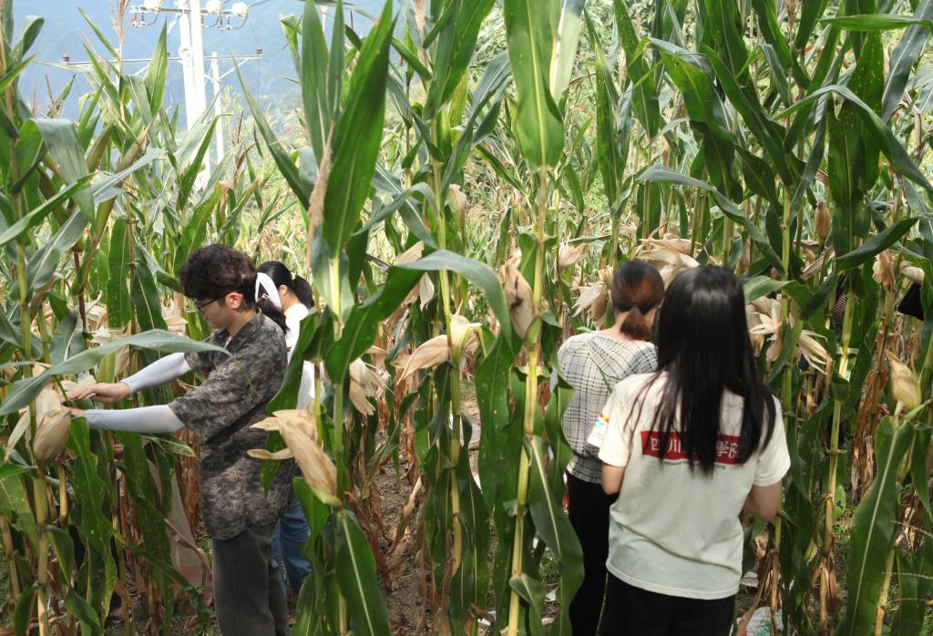 实践团队走进农户家中,深入田间地头,开展劳动教育,体验养猪、玉米采摘、砍柴烧饭等农活。农活体验让实践团对农村生活有了更真实的了解,深刻体验了农民生活的不易和艰辛,也感受到了青年一代身上的责任与担当。