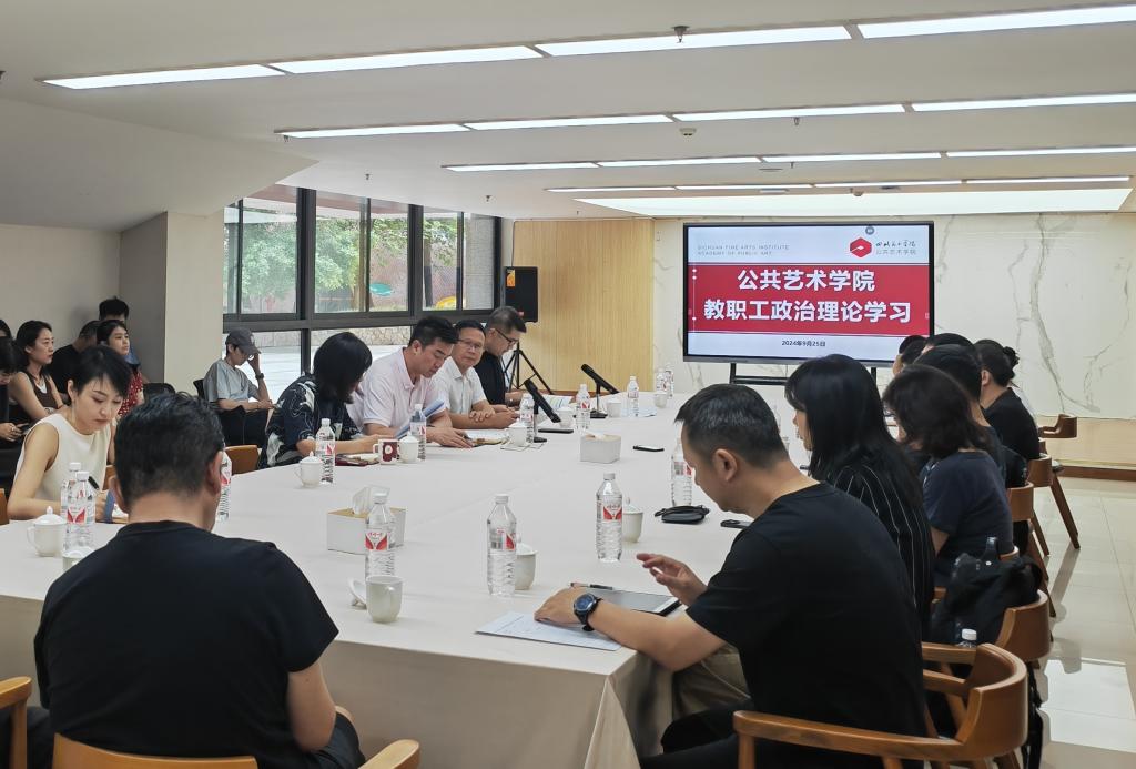 9月25日下午,公共艺术学院在黄桷坪校区召开教职工理论学习会,传达学习近期重要会议精神并部署新学期工作。公共艺术学院全体教职工及班子成员出席。会议由党委书记雍朝永主持。
