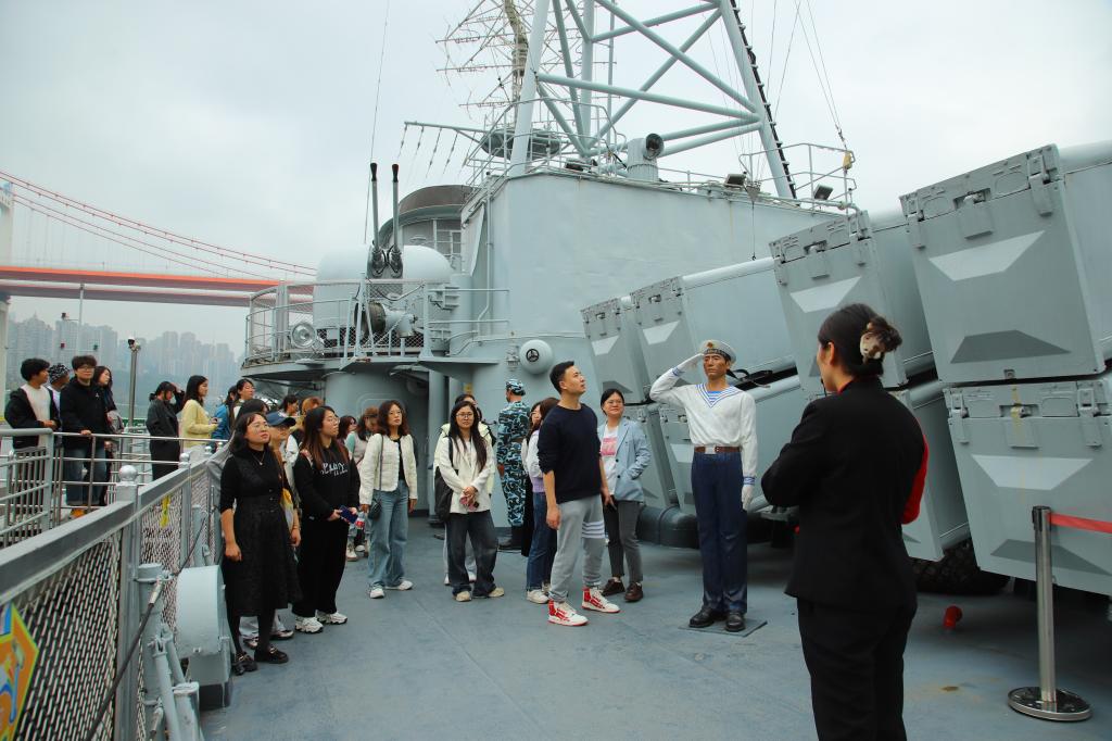 全体师生在工作人员的带领下,参观了抗战文物博物馆、票证生活博物馆、海疆博物馆166舰陈列展。大家在工作人员的生动讲解下,通过馆内数百件抗战文物、影像资料,深入了解抗日战争历史,重温抗日战争峥嵘岁月,感受革命先烈的爱国主义精神。随后,师生进入166舰陈列馆,身临其境领略166战舰的风采,了解166舰的服役历史、中国海军发展的光辉历程,感受我国海军装备的快速发展。