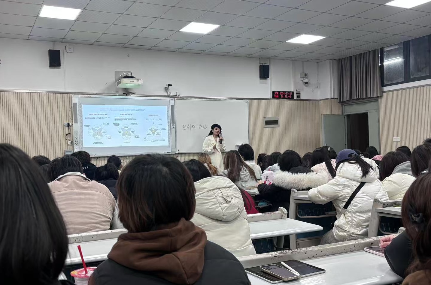 王盈盈首先分享了个人的创业经历和经验。她鼓励同学们在学习中深度思考,充分了解自己、找到自己的核心竞争力。王盈盈重点讲解了“九力”核心竞争力,即分析力、创新力、学习力、共情力、引领力、交往力、行动力、目标力、驱动力。此次讲座为我校学生与优秀校友搭建了直接交流的桥梁,为同学们在打造就业核心竞争力这方面提供了有益的指导与启示。