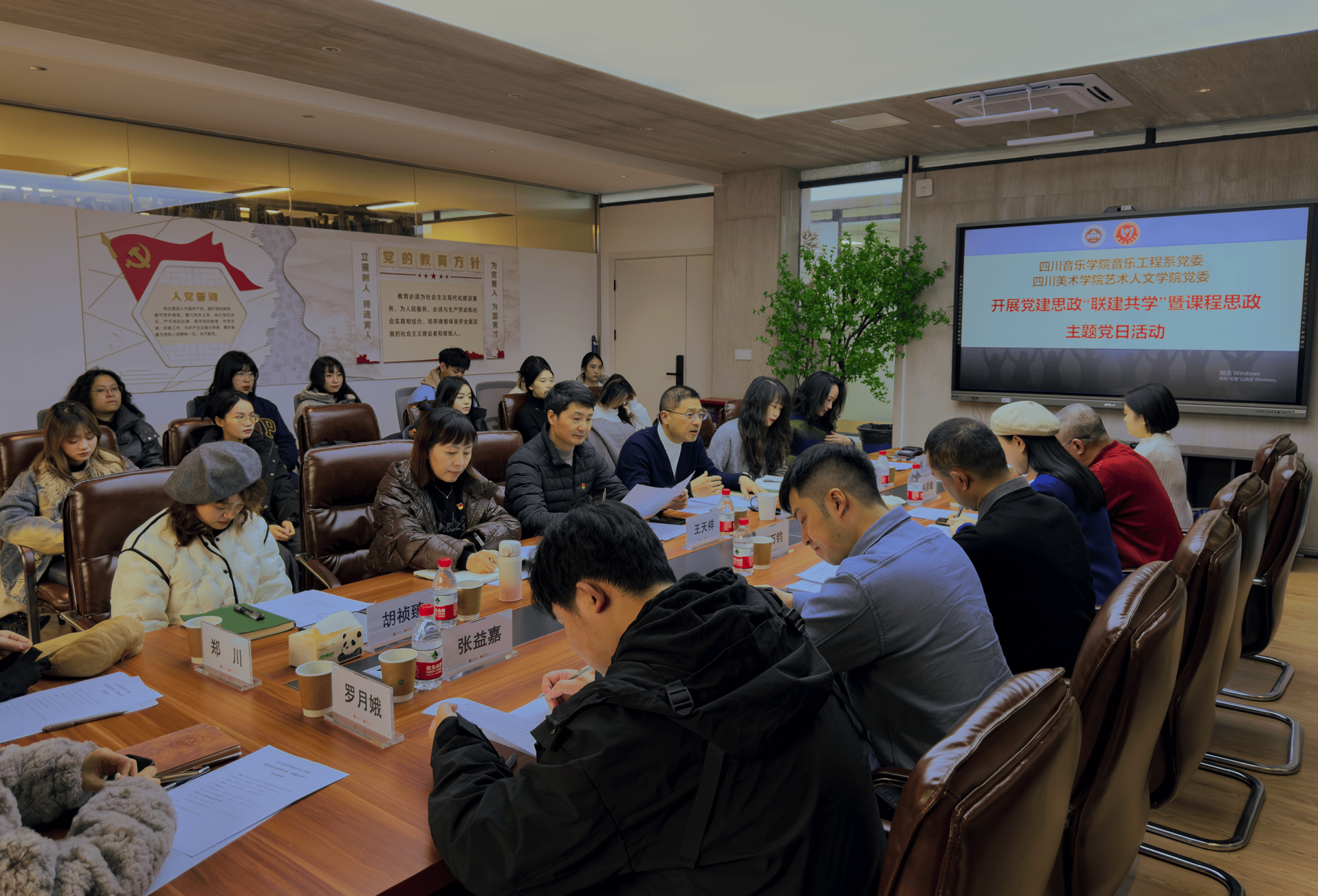 12月10日下午,四川音乐学院音乐工程系党委副书记邓舒一行到我校艺术人文学院调研交流,联合开展党建思政“联建共学”暨课程思政主题党日活动。艺术人文学院党委书记杨茂森、院长王天祥、副院长董虹霞、党委副书记李霞和师生代表参与了调研交流。
