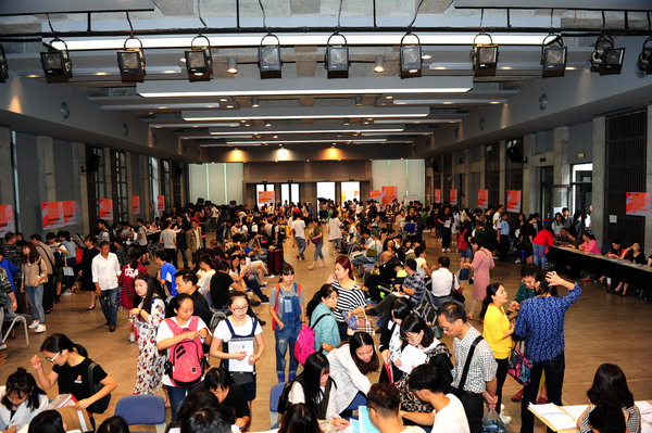 “繁花笑靥喜迎八方学子,绿树摇曳共谱七彩未来”,2016年9月8日,秋雨送爽,凉风习习,四川美术学院虎溪校区迎来了来自全国各地的本科新生1309人,研究生新生266人。他们怀揣着梦想与希望,饱含着欣喜与激动,在多功能厅完成报到、注册及缴费等手续后,将开启美好的大学新生活。迎新现场人头攒动,报到过程井然有序。