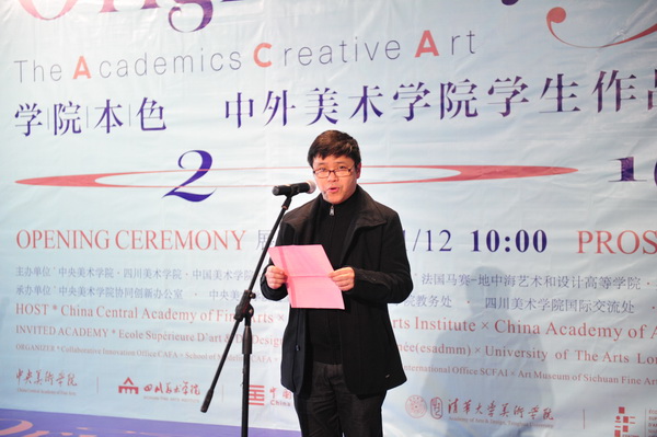 国内外参展院校嘉宾代表、中央美术学院党委副书记王少军,英国格拉斯哥美术学院造型学院院长Alistar分别在开幕式上致辞。出席开幕式的领导和嘉宾为展览获奖学生代表颁奖。最后,我校黄政书记宣布展览正式开幕。