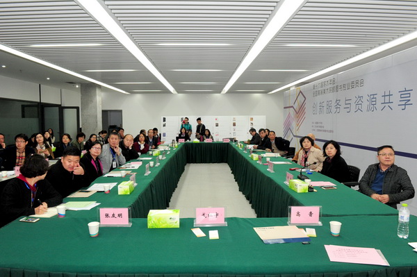 当日下午,与会领导与各馆代表在我校图书馆围绕“创新服务与共享资源”主题,就图书馆工作进行切磋交流。其中,清华大学美术学院、天津美术学院、山东艺术学院、南京艺术学院、四川美术学院、广州美术学院、西安美术学院、鲁迅美术学院等与会领导与各馆代表就“电子资源建设与阅读推广”、 “特色数据库建设”、“美术学科特色资源保护与共享”、“图书馆资源建与空间建设”等主题,发表了精彩的主题发言,并展开热烈的交流,现场气氛活跃、融洽。