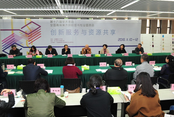 11月11日,由全国高等美术院校图书专业委员会主办、四川美术学院承办,邀请中央美术学院、中国美术学院、清华大学美术学院、广州美术学院、天津美术学院、鲁迅美术学院、西安美术学院、湖北美术学院、南京艺术学院、广西艺术学院等15所院校图书馆专家、学者共同参与的,以“创新服务与资源共享”为主题的全国高等美术院校图书专业委员会第16届学术年会,在我校虎溪校区顺利举行。