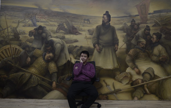 油画《战乱中的墨子》(庞茂琨、刘晓曦、王朝刚、郑力、王海明)