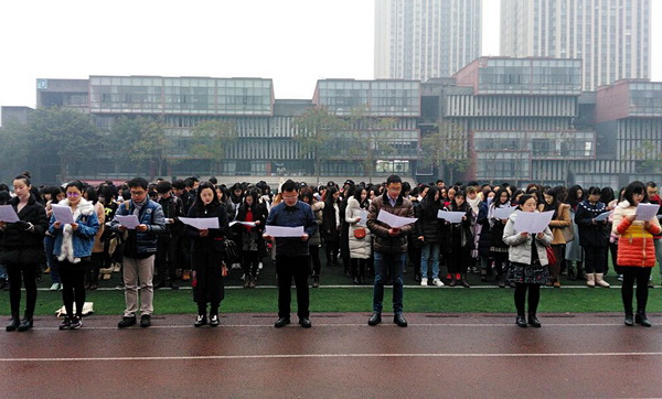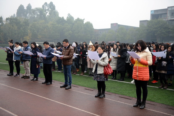 为迎接国家宪法日,贯彻落实党的十八大和十八届三中、四中、五中、六中全会精神,深入贯彻习近平总书记系列重要讲话精神,推进我校的宪法学习教育,根据教育部、市教委相关文件精神和学校党委要求,我校于12月2日上午7点50分组织开展了宪法晨读活动。学校党委副书记左益出席活动,与同学们一起诵读宪法。党委宣传部、学生处负责人及部分院系辅导员参加了宪法晨读活动。2016级部分院系的300余名学生在操场国旗下,一起诵读了宪法的第一条、第二条、第五条、第三十三条、第四十六条、第五十一条、第五十二条、第五十四条内容。