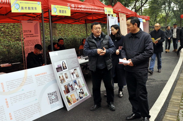 重庆市2017届普通高校毕业生就业双选会(美术设计类专场)于12月2日在我校多功能厅举行。学校党委书记黄政、党委副书记左益、副校长侯宝川、纪委书记苟欣文,重庆市教委学生处处长奚弟超、重庆市大学中专毕业生就业指导服务中心主任余跃等领导亲临双选会现场,与用人单位和毕业生亲切交流。