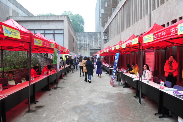 为了提高双选会参会单位质量,左益要求,学工系统要主动走出去开拓就业市场,邀请优质用人单位来校参加双选会。11月中下旬,学工系统通过 “走出去”和电话、网络等多种形式,邀请优质用人单位来校参加双选会。今年双选会参会单位地域广、质量高。包括北京的中央电视台中视前卫影视传媒有限公司、掌趣科技股份有限公司、居其美业室内设计有限公司、满意视觉艺术设计有限公司、影像麦客文化传媒有限公司,上海的幻维数码创意科技有限公司、昀文广告有限公司,广州的星艺装饰集团股份有限公司、小星辰品牌集团,深圳的丝路数字视觉股份有限公司、航盛电子股份有限公司、重庆的天古装饰、高戈广告以及四川旅游学院、四川传媒学院等218家用人单位参加了双选会,现场总共提供了3500余个岗位。各院系也分别收集了就业信息,学生处将双选会参会单位和各院系收集的合计408家、共6300余个就业岗位的用人单位信息汇编成册,发至毕业生手中。我校及市内外6000多人次毕业生参加了双选会。2016年12月2日下午至2016年12月4日,还将有15个专场招聘会陆续举行。