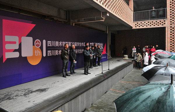 最后,黄政宣布四川美术学院第20届学生作品年展暨第13届研究生作品年展正式开幕。四川美术学院学生作品年展自1996年开始举办以来,得到了全校师生的高度重视和积极参与,20载光阴,学生年展见证了川美学子在艺术道路上取得的每一点进步,也凝聚了川美老师们的辛劳和汗水。