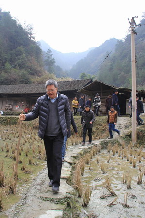 腊月二十八(2017年1月25日),春节的气氛日益浓厚。踩着泥泞的小路,四川美术学院党委书记黄政、副书记左益代表师生来到黔江区石会镇梅子村,在黔江区副区长孙天明等的陪同下看望和慰问10户贫困村民,送上节日的祝福。学校党委宣传部、工会、区扶贫办、镇村干部也一并陪同看望慰问。