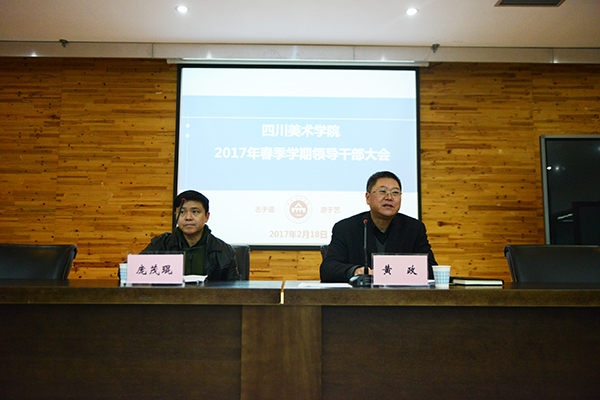 2月18日上午,学校在虎溪校区五会议室召开2017年春季新学期干部大会,全体校领导、全体中层领导干部和科级干部、学校各民主党派负责人参加了会议,会议由校党委书记黄政主持。