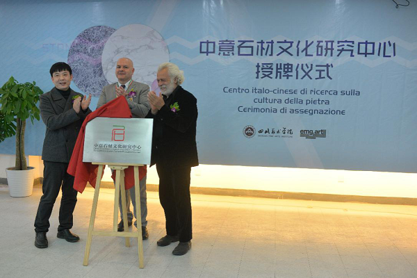 期间的重要成果——由四川美术学院、威尼斯雅伦格文化艺术基金会联合意大利石材学院共同发起,旨在更好地推动石材文化研究、推动石材技术革新的中意石材文化研究中心正式落户四川美术学院。中意石材文化研究中心于2017年3月20 日在四川美术学院正式授牌,中心聘请雅伦格文化艺术基金主席、前威尼斯建筑大学校长Marino Folin教授、四川美术学院设计艺术学院院长段胜峰教授为主任;四川美术学院王立端教授,雅伦格文化艺术基金会联合创始人,大石馆文化创意股份有限公司董事长兼CEO李家豪先生,香港樊尚创意产业发展有限公司执行董事邓良军先生为副主任。