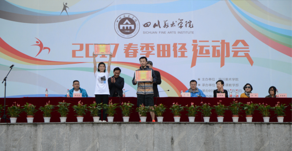 3月31日下午,我校2017年春季田径运动会在虎溪校区田径运动场圆满落幕。经过两天的精彩而激烈角逐,全校学生人数最多的公共艺术学院以总分485.5获得团体总分第一名,雕塑系、美术教育系分别获得团队总分第二名和第三名,影视动画学院、版画系获得体育道德风尚奖,公共艺术学院、新媒体艺术系获得最佳方阵奖,校领导亲自为获奖院系颁发了奖状。