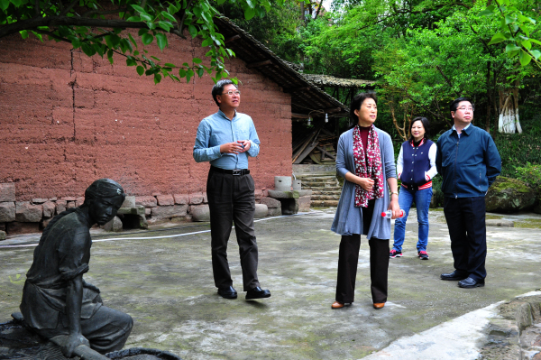 黄政向客人介绍了学校基本建设理念、校园文化建设思路,并带客人参观了学校老院子、实验中心、美术馆、校友墙、虎溪公社等。