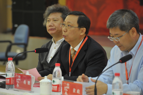 庞茂琨致辞。他指出,“中国故事”当代中国绘本艺术拓展研讨会是中国文学艺术界的一件盛事,是我国文化界和美术界联合举办的一次大型学术研讨活动。“群贤毕至,少长咸集”。此次研讨会将主要围绕着“当代中国绘本语言的应用与拓展”、“绘本传播推广与文创产业发展”、“新时期绘本创作与教学改革”等方面进行深入研讨,共同推动当代中国绘本艺术的发展与创新,以切实的行动积极响应习近平总书记的号召,明确时代和人民赋予我们的神圣使命,为讲好中国故事,弘扬中国精神贡献自己的力量。此次研讨必将有力推动绘本艺术的拓展研究,推动绘本艺术的教学与改革,推动绘本艺术产业的繁荣与发展。这不仅会成为我们四川美术学院历史上的重大事件,也会在中国文化艺术的历史上留下浓墨重彩的一笔。