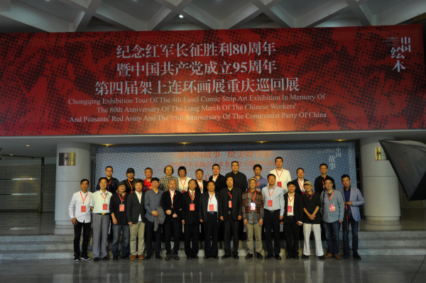 开幕式后,各位参会嘉宾参观了同步开展的“纪念红军长征胜利80周年暨中国共产党成立95周年第四届架上连环画重庆巡回展”,并合影。该展览展出红军长征、抗战杀敌等相关题材连环画作品约500多幅,展览从5月12日展至5月25日结束。