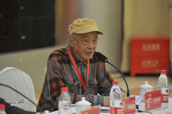 沈尧伊讲话。他说,此次研讨会是美术界的一次盛会,希望各院校联合起来以讲好中国故事的方式,共同创作出更多好作品。用优秀作品吸引有更多的青年来关注连环画和绘本创作,并宣布了“第五届架上连环画展”筹备工作正式启动。