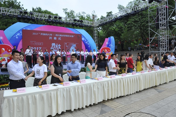 (文:公共艺术学院;图:党委宣传部 杨勇)6月2日上午10时,2017“开放的六月——四川美术学院艺术游”开幕式在四川美术学院黄桷坪校区隆重举行。开幕式由四川美术学院党委书记黄政主持。重庆市文化委员会副主任朱茂,重庆市旅游局副局长秦定波,中共九龙坡区委书记丁洪,区政府区长、高新区管委会主任刘小强,区人大常委会主任胡奇明,区政协主席郑和平等领导,四川美术学院院长庞茂琨、党委副书记左益、副院长张杰、纪委书记苟欣文,及九龙坡区相关部门、街镇主要负责人和四川美术学院机关、各院系领导等出席开幕式。