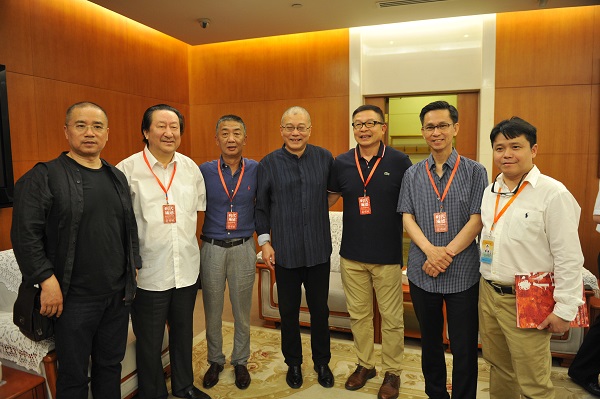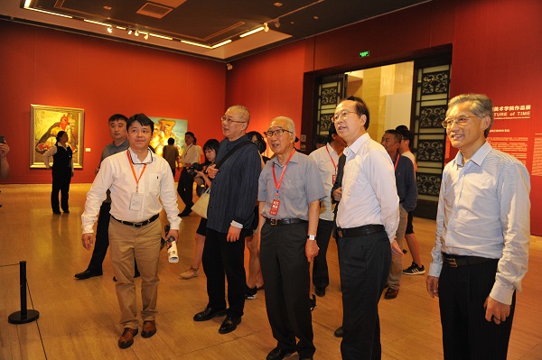 四川美术学院党委书记黄政介绍了来自各界的领导和嘉宾。在京有关单位、文化机构和重庆市有关领导有:全国政协常委、原中央美术学院院长靳尚谊、中国文联副主席、书记处书记左中一先生、新华社北京分社党组书记、社长梁相斌先生、文化部艺术司副司长周汉萍女士、教育部人事司副司长殷长春先生、国家信息中心副主任马忠玉先生、国家艺术基金管理中心副主任张堃先生、文化部中外文化交流中心主任于芃先生、中国美术家协会党组书记徐里先生、中国美术馆馆长、中国美协副主席吴为山先生、中国国家画院院长杨晓阳先生、北京市文化中心基金总裁姬连强先生、中国美术家协会副主席何家英先生、原四川美术学院院长罗中立先生、重庆市文化委副主任朱茂先生、重庆文联党组书记陈若愚先生、保利文化集团副总经理周游先生、台湾山艺术基金会董事长林明哲先生,以及中国文联、中国美协、中国美术馆、中国国家画院、中国艺术研究院、民生美术馆、保利文化集团等北京文化单位、企事业单位领导。