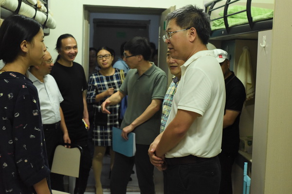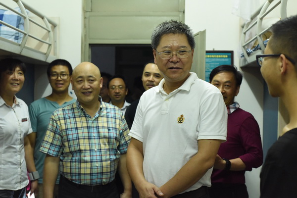9月7日,是新生到校第一天。当日晚上8点,党委书记黄政、副校长张杰、纪委书记苟欣文、副校长彭林权带队,党政办、宣传部、组织部、教务处、后勤处、保卫处、学生处、团委及部分院系负责人参加,一起深入学生宿舍,探望慰问2017新同学。