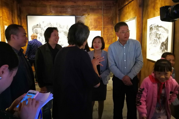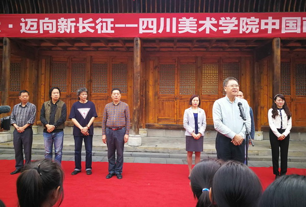 刘剑飞作了热情洋溢的致辞。她讲到,四川美术学院中国画系师生深入生活、扎根石棉实地采风创作的艺术精品,用画笔生动展示了石棉的人文风情和山川风貌。一幅幅作品更充分展示了革命老区展新的精神风貌,热情讴歌了石棉人民在红军精神鼓舞下灾后重建取得的巨大成就。让我们深深感受到传统文化的魅力与充满积极向上的正能量。利用四川美术学院的文化艺术资源、信息平台、媒介优势和我县的文化资源、产业优势,实现双方优势互补,共同发展。这次写生展是四川美术学院与石棉县政府“校地共建”战略合作的重要体现,更是对石棉文化发展的鞭策和鼓励。