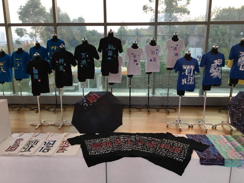 把社会主义核心价值观记在心里,穿在身上。设计艺术学院发挥服装设计的优势,以社会主义核心价值观为题,设计了系列服装作品和衍生作品。
