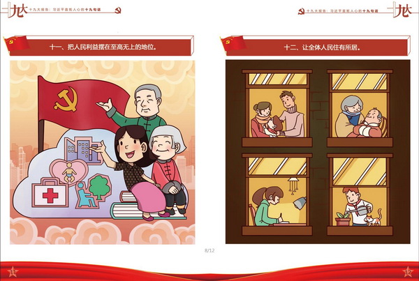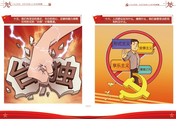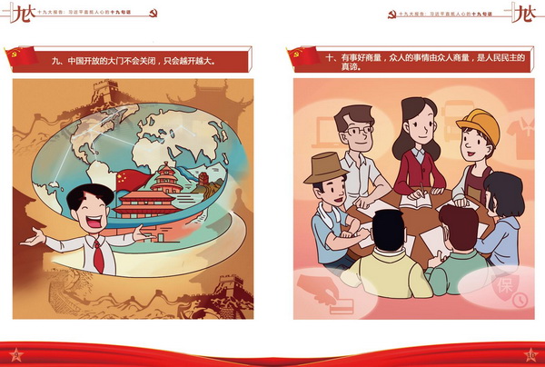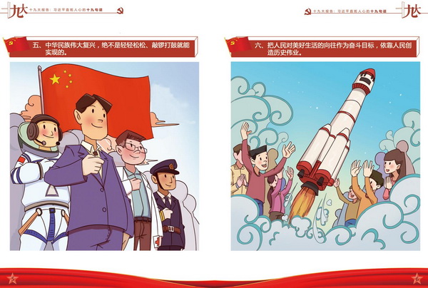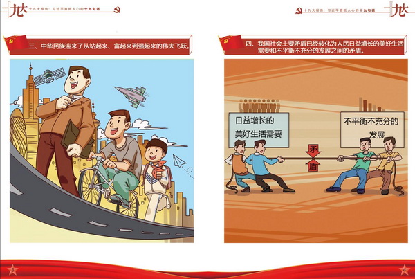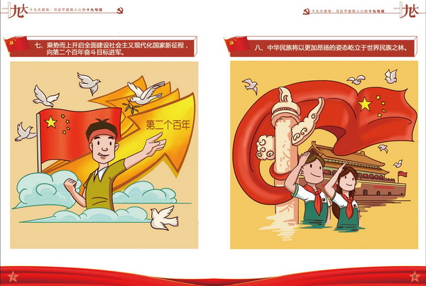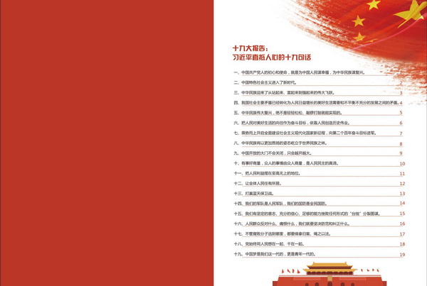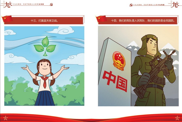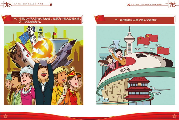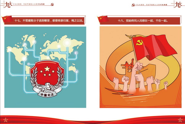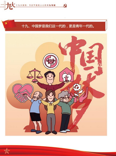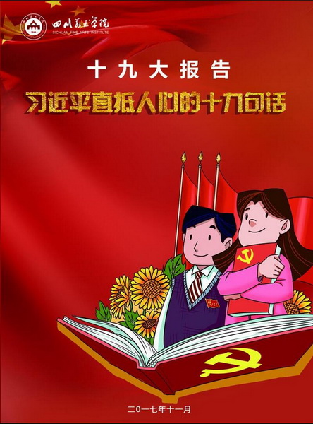 习近平总书记在十九大报告中的直抵人心的19句话,成为了学工部组织学生干部集体创作的源泉。生动形象的造型,精心创作的画面内容,灵动活沷的形象设计,让19句直抵人心的话,变成了19幅打动人心的画面。