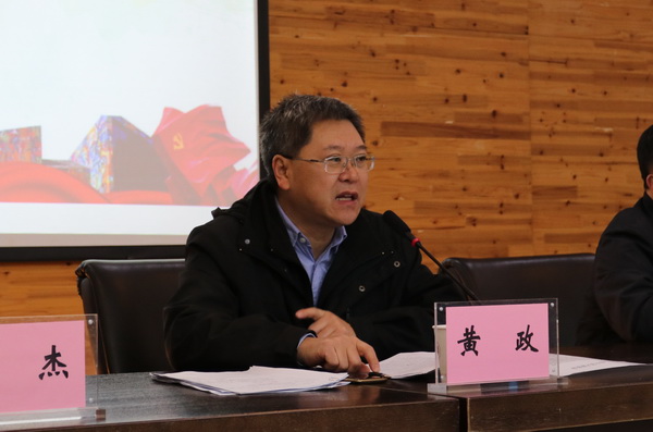 黄政在开班式上作辅导讲话。他强调,学校党委把学习宣传贯彻党的十九大精神作为学校当前和今后一个时期的首要政治任务,全校领导干部要深刻认识党的十九大的重大历史贡献,其中三大重要成果尤为突出:一是政治成果,产生了以习近平同志为核心的新一届中央领导集体,明确了习近平总书记在党中央和全党的核心地位;二是理论成果,确立了习近平新时代中国特色社会主义思想为党的指导思想;三是实践成果,全面规划部署了到本世纪中叶建设社会主义现代化强国的路线图和时间表。领导干部要努力在学懂弄通做实党的十九大精神实质上狠下功夫,旗帜鲜明讲政治,带动引领全校党员干部学深悟透党的十九大精神,强化政治意识、大局意识、核心意识、看齐意识,切实把思想认识统一到坚决维护以习近平同志为核心的党中央权威和集中统一领导上来,统一到习近平新时代中国特色社会主义思想上来,以崭新的精神面貌和奋斗姿态,全面落实党的十九大提出的各项任务,扎实推动学校各项工作创新发展。