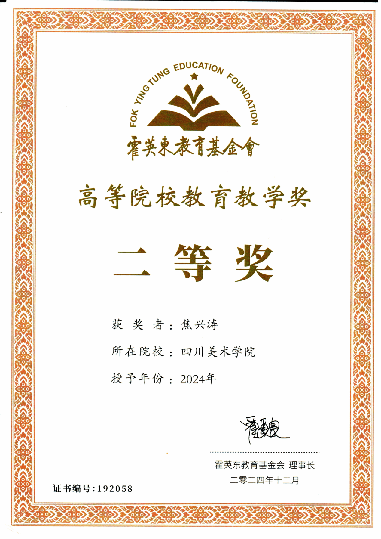 近日,“霍英东教育基金会第19届高等院校青年科学奖和教育教学奖”名单公布,四川美术学院院长焦兴涛教授获高等院校教育教学奖二等奖。