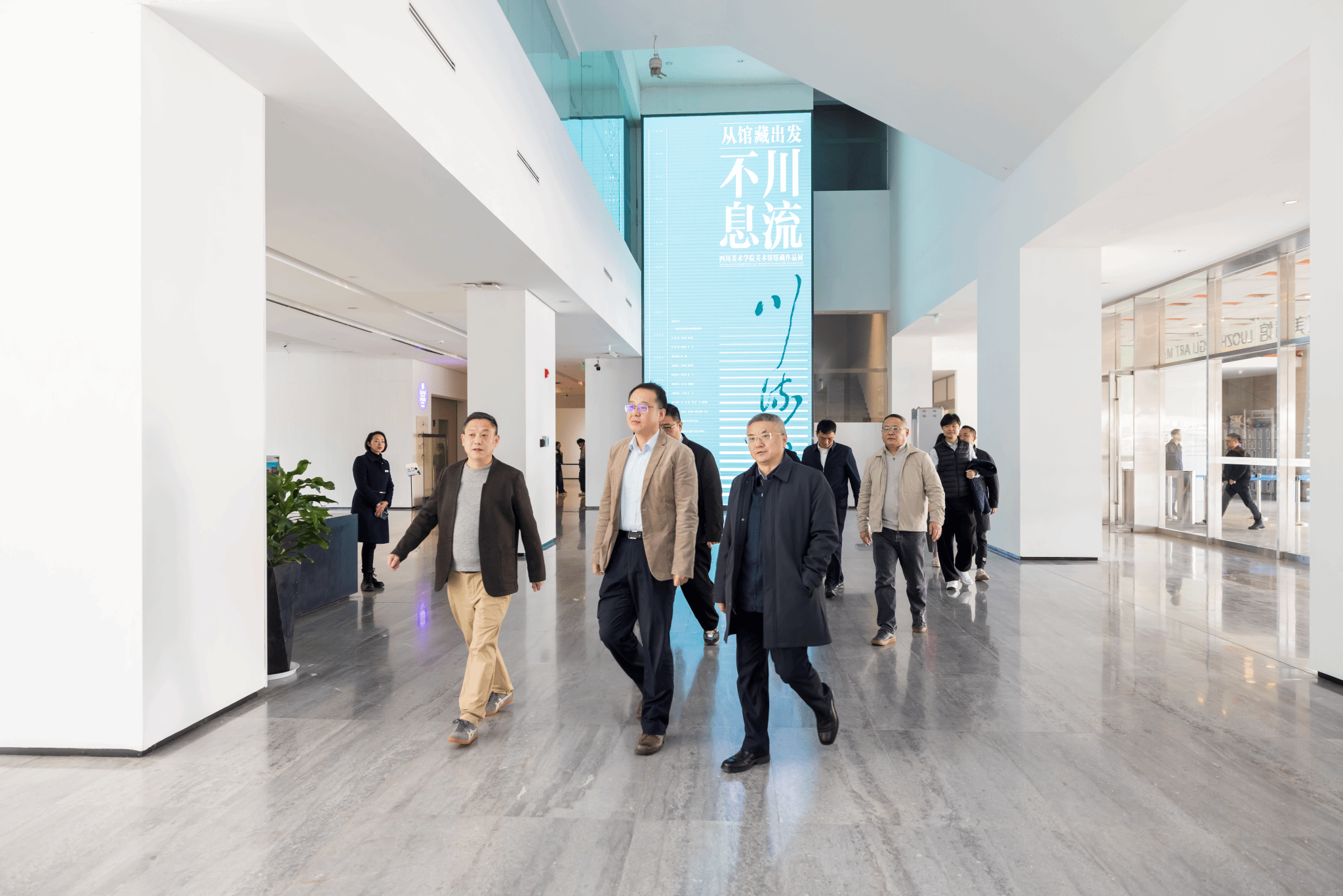 朱宏凌一行在美术馆馆藏展厅、收租院陈列馆、校史馆等地,调研了学校教学科研创作成果。