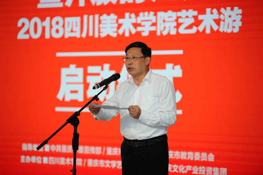 5月27日下午,由中共重庆市委宣传部、市文化委员会、市教育委员会指导,四川美术学院、重庆市文学艺术界联合会、重庆文化产业投资集团联合主办的“重庆艺术大市场暨开放的六月——2018四川美术学院艺术游”启动仪式在四川美术学院美术馆举办。市委常委、宣传部长张鸣,市委宣传部副部长、市文化委主任张洪斌,重庆文投集团党委书记、董事长陈余莉,市教委专职督学邓沁泉、市文联副主席龙川、中国电子科技集团公司董事、党组副书记胡爱民、沙坪坝区区委常委、区委办主任、宣传部长陶世祥,以及莅临我校开展本科教学工作审核评估的教育部专家、山东艺术学院美术学院副院长唐鸣岳教授、浪尖设计集团有限公司董事长兼总裁罗成先生,中央和重庆新闻媒体界、有关部门负责同志和师生代表参加启动仪式。学校党政领导出席启动仪式,启动仪式由党委书记黄政主持。市委常委、宣传部长张鸣宣布了“重庆艺术大市场暨开放的六月——2018四川美术学院艺术游”正式启动。