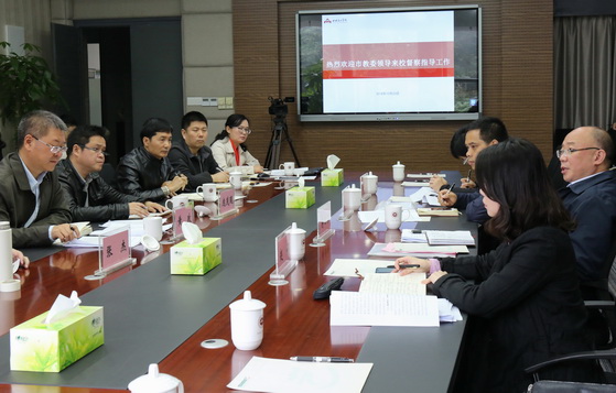 10月23日上午11点,由市教委高教处处长蒋后强一行四人组成的督察组,对我校教育改革任务贯彻落实情况进行了专项督察。党委书记黄政、院长庞茂琨、副院长张杰,相关部门负责人和各二级院系行政负责人参加了督察汇报座谈会。