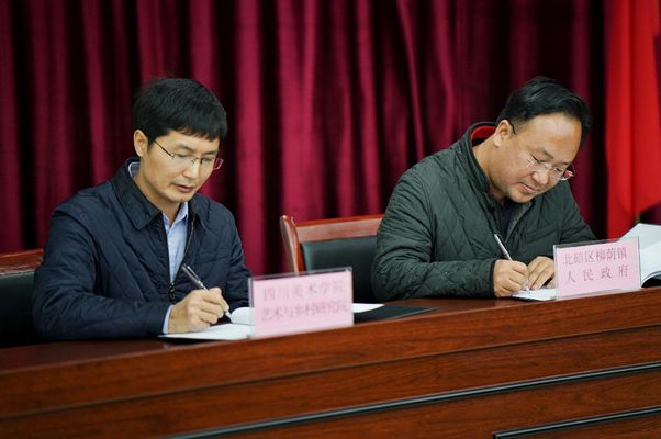 11月9日下午,四川美术学院艺术与乡村研究院-村社艺术基地(柳荫)签约仪式在北碚区柳荫镇举行。我校党委书记黄政出席签约仪式,教务处处长王天祥教授、北碚区委宣传部副部长张汝国、北碚区文化委主任殴阳俊、北碚区旅游发展委员会副主任邹文彬、柳荫镇党委书记丁小兵、镇长陈黎明等领导参加签约仪式。我校乡村振兴与民艺活化工作室主任曾令香副教授主持本次活动。