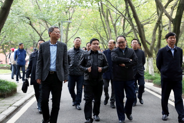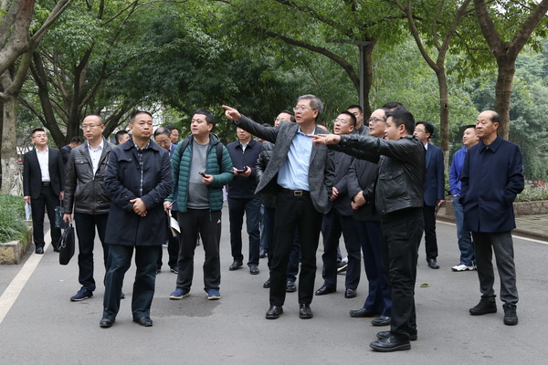 11月13日下午,九龙坡区区委书记周勇、区长刘小强、区人大常委会主任胡奇明、区政协主席郑和平一行来我校黄桷坪校区,实地探访双方校地合作建设项目推进情况,与学校党政领导黄政、庞茂琨、张杰、苟欣文、彭林权座谈商讨进一步合作事宜。