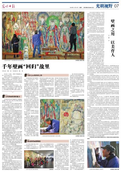 11月12日,《光明日报》(2018年11月12日 07版)刊登了我校中国画系教授黄山的文章《壁画之用 以美育人》。
