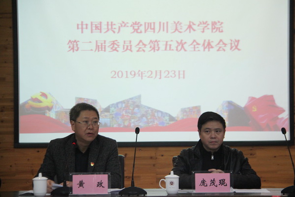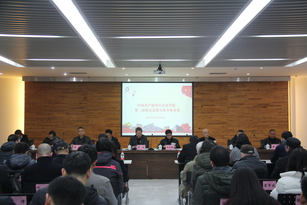 2月23日上午,中国共产党四川美术学院第二届委员会第五次全体会议在五会议室举行。党委书记黄政主持会议。全体在家党委委员出席,校级领导干部、纪委委员、中层领导干部、科级领导干部、二级教授、市、区党代表、人大代表、政协委员、民主党派负责人、各党支部书记、辅导员、部分教师代表及老同志代表等共计180余人列席会议。