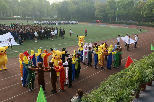 庞茂琨致开幕辞并宣布四川美术学院2019春季田径运会开幕。全校14个单位的运动员和师生代表组成了入场方队,各个单位的入场方阵都展现出各自的学科和专业特色。伴随着青春欢快的音乐,川美学子表演了富有青春气息的团体操表演,展示了我校学生蓬勃朝气、意气风发的精神面貌。