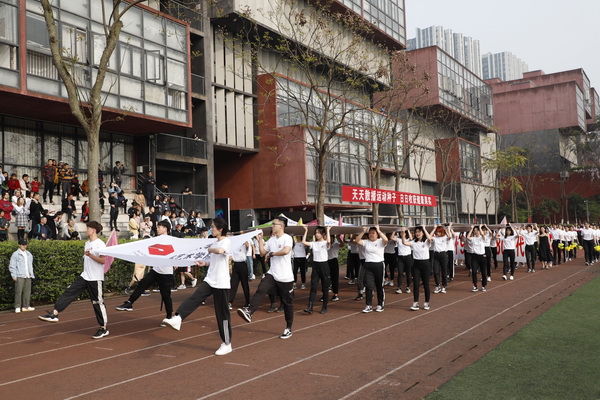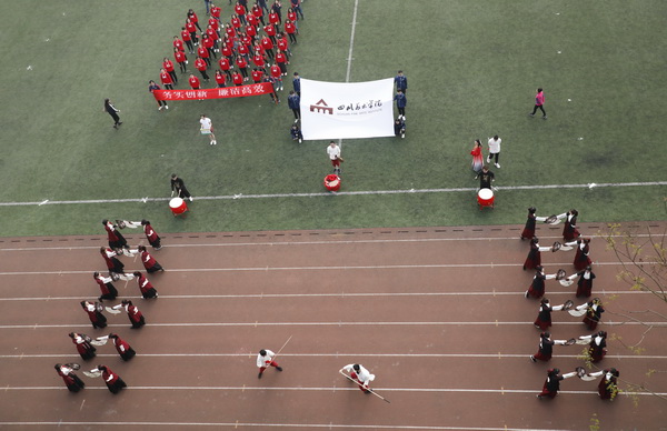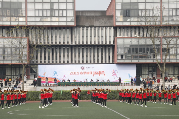 四川美术学院2019春季田径运动会于3月28日至29日在虎溪校区田径运动场举办。学校邀请了对学校改革发展给予大力支持的重庆市悦来投资集团党委书记、董事长王菊梦,集团党委副书记、总经理熊寄然,集团党委副书记、副总经理石键,集团党委委员、副总经理邬达君,集团党委委员、纪委书记潘勇出席开幕式现场;学校党委书记黄政、校长庞茂琨、纪委书记黄云、副校长彭权林等出席了开幕式。开幕式由副校长张杰主持。各相关职能部门、各院系负责人及全校师生参加了开幕式。