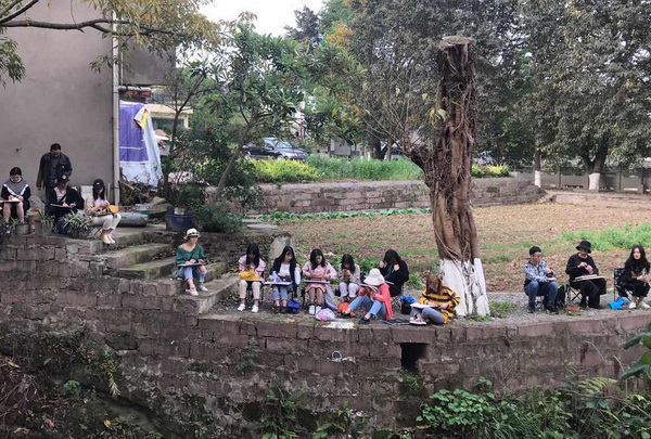 设计艺术学院带领环境设计、视觉传达设计、数字媒体艺术、产品设计等专业240名师生前往北碚偏岩镇,一方面秉持学院写生传统,通过风景写生活动促进社会美育的普及,以具体的绘画行动呈现乡村风貌,提升村民对美的生活追求的向往;另外一方面,通过有针对性的田野调查系列活动,关注乡村、社区的环境和生活现状,在与村民的深入交流和分享过程中,当地小学一起互动创作中,促使村民关注乡村环境问题,引发民众进一步的环境意识,促进“绿水青山就是金山银山”的观念普及,并各专业角度出发,集体形成了《偏岩古镇人居环境及旅游资源调研报告》,为当地提供有建设性的意见和设计方案。