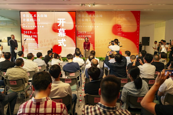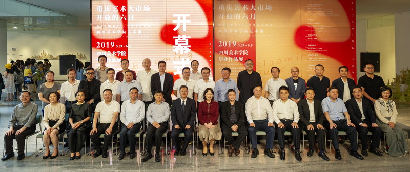 重庆市人民政府副市长潘毅琴,市委宣传部副部长张洪斌,市政府办公厅副主任凌凡,沙坪坝区委书记江涛,璧山区委书记蓝庆华,市教委副主任邓沁泉,市文旅委副主任朱茂,新华社重庆分社社长李勇,市文联主席沈铁梅,中国美协副主席、重庆市美协主席、四川美术学院院长庞茂琨等领导和嘉宾出席开幕式。四川美术学院党委书记黄政主持仪式。潘毅琴副市长为“重庆文化艺术产业研究院”和“重庆城市形象设计研究院”授牌,并发表讲话,宣布“重庆艺术大市场 开放的六月——2019四川美术学院艺术游”开幕。