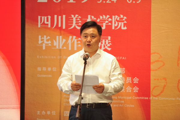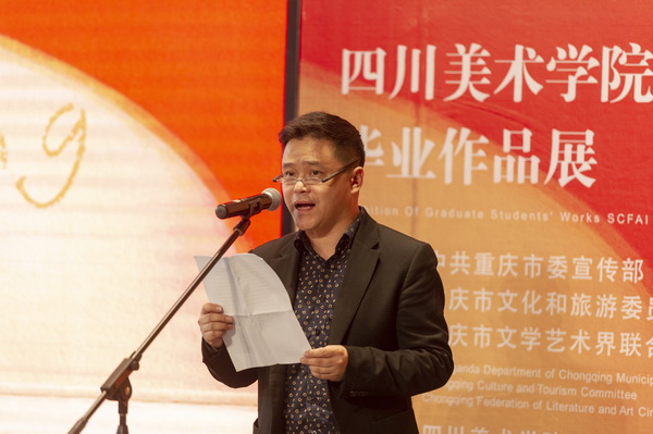 四川美术学院院长庞茂琨在致辞中,向出席仪式的毅琴副市长和市委、市政府有关部门、企业界、文艺界、媒体界、沙坪坝区的领导和嘉宾表示热烈欢迎。他着重介绍了今年的毕业创作对比往年有三个鲜明的特点:一是更加强调鲜明的地方特色和时代特色,鼓励师生积极深入生活、深入群众,推出更多展现时代风貌、传递人民心声、弘扬传统文化、彰显重庆特色的主题性创作;二是特别强调设计立足本土,把毕业设计和重庆产业发展、城乡规划设计、美丽乡村建设、脱贫攻坚、乡村振兴、社区公共文化建设等重大社会实践紧密结合,以设计服务重庆经济社会发展;三是更加注重学生创作创造的全球视野、科技眼光和文化底蕴,鼓励学生确立当代的、中国的、基于自身体验的艺术追求,探索新的艺术之路。庞茂琨表示,今年学校将在主城有关艺术机构、繁华商圈和社区举办一些专题性艺术展览,便于市民更好地走进艺术、欣赏艺术,让广大艺术学子的学习成果主动接受社会各界的检阅。