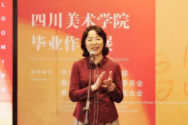 重庆市人民政府副市长潘毅琴在开幕式上发表讲话。她讲到,现在全市上下都在认真贯彻落实习近平总书记视察重庆重要讲话精神,市委刚刚召开的五届六次全委会,主题就是认真落实总书记视察重庆重要讲话精神,认真落实总书记对重庆提出的发挥“三个作用”的战略定位和要求。她认为,“重庆艺术大市场 开放的六月——四川美术学院艺术游”活动的举办,正好契合了习近平总书记对重庆的战略定位和要求,也契合了市委书记陈敏尔在市委五届六次全委会上提出的要把重庆建设成为国际化、绿色化、智能化、人文化现代城市的要求。川美是我市高校中以美术、艺术见长的高等院校和研究中心,川美的艺术家和艺术作品名扬海内外。她提出,建立重庆艺术大市场,不仅是让同学们的毕业作品在学校里面展出,更希望让这些艺术品和学生的艺术才华能更多地在重庆这座城市里、乡村里发挥更大的作用,为人民造福,为城市添彩。她祝愿“重庆艺术大市场 开放的六月——2019四川美术学院术游”活动越办越好,不仅在重庆,而且在全国、全世界都绽放出更加绚丽的艺术光彩。