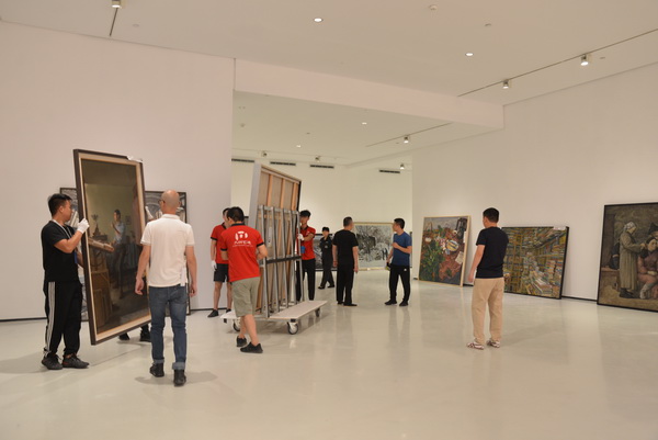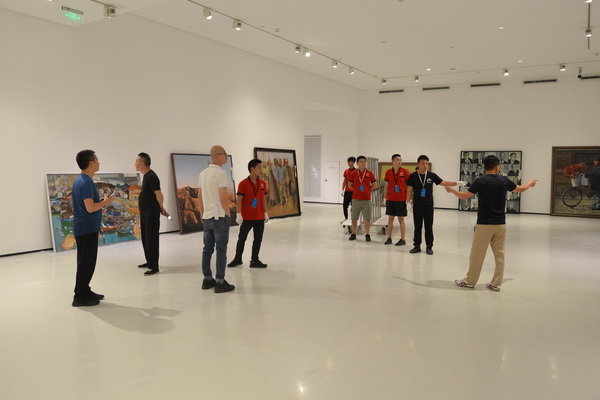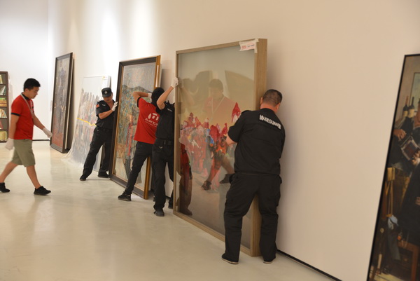 据美术馆工作人员介绍,入选本届全国美展的595件油画作品将在四川美术学院美术馆的9个展厅里进行展出,共使用展厅面积约8000平方米,总展线近2000米。作为全国美展重头戏之一的油画展区,本次展出的作品不仅数量多,而且大多数作品尺幅偏大,美术馆为此专门作了精心的展陈规划,如:搭建展墙以保障展线,邀请专业的灯光团队对每一幅作品的射灯进行效果调节等,力争为广大观众更好地呈现每一幅作品。截至发稿前,本届全国美展油画展区的作品已基本上墙施工完毕,参观指南、导引标识的制作,展签的安装,场馆内外的宣传氛围营造,开幕式的各项筹备等工作正在紧张有序地进行中。