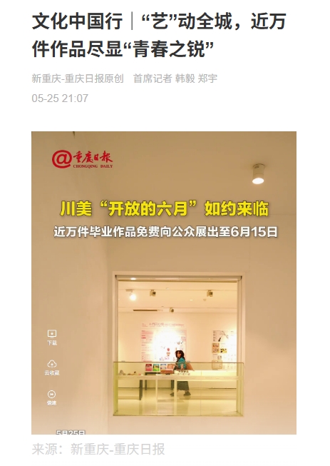为积极回应全国广大观众持续高涨的观展需求,让更多艺术爱好者亲临现场感受川美学子的艺术风采,体验川美良好的育人环境和优质的办学成效,充分展现重庆文化强市的成效,擦亮川美文化“金名片”,学校决定延长2025年本科生毕业作品展展期至6月22日,加时开放四川美术学院美术馆,有序开放校园。